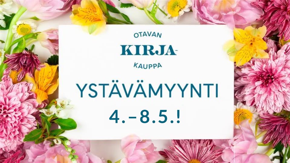 *Ystävämyyntialennukset Otavan verkkokaupassa: Ystävämyyntiedut saat Otavan verkkokaupasta koodilla KEVAT26. Linkki verkkokauppaan: Etusivu | Otava verkkokauppa Otavan verkkokaupasta voit ostaa Otavan, Kariston, LIKEn, Nemon, Moreenin ja F- Kustannuksen teoksia: -50% yleinen kirjallisuus, -30% kalenterit. Alennus ei koske oppikirjoja.
